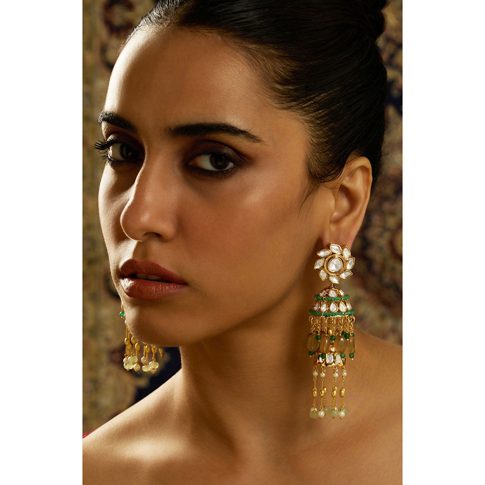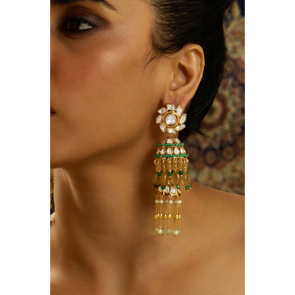 Green Elara Longline Pearl Kundan Jhumka Earrings