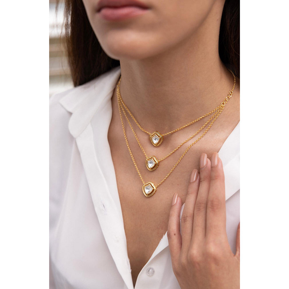 Description : This Layered Chain Necklace Pairs Three Heart-Shaped Mirror Pendants with A Minimal Gold Framework For A Youthful Yet Polished Finish. Great For Casual Ethnic Styling Or As A Light Statement Piece For Daytime Dressing.