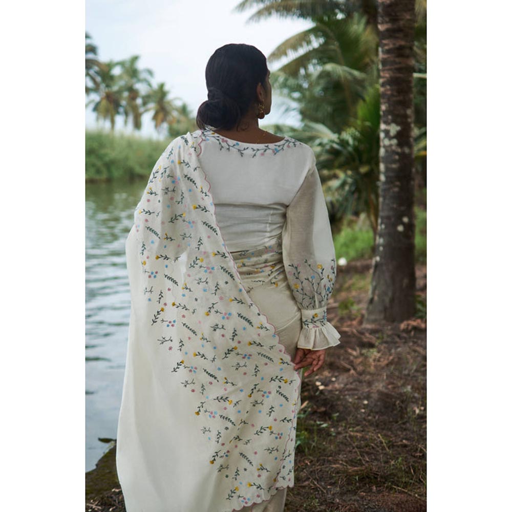 KAVANA Mace White Handwoven Chanderi Saree