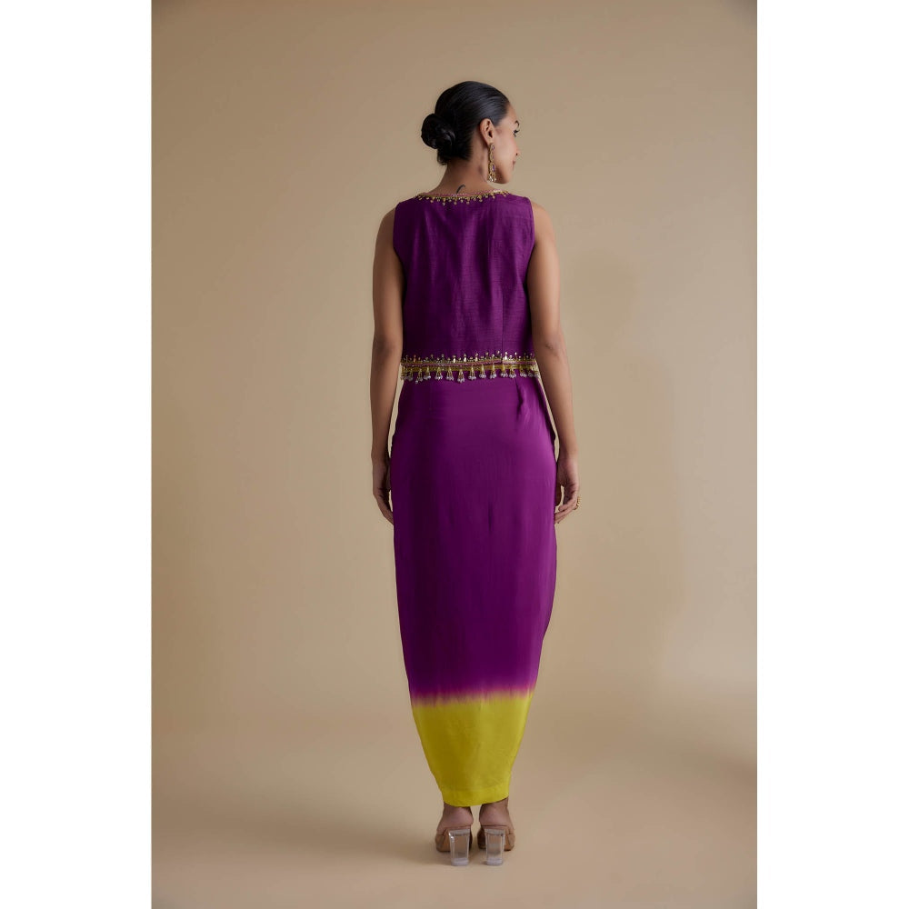 KEITH GOMES Purple Embellished Overlap Blouse & Skirt (Set of 2)