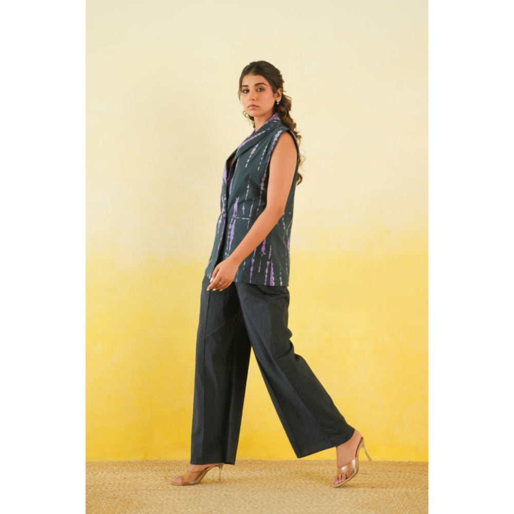 Long Waistcoat And Pants Co-Ord Set Of Two In Shibori (Black And Purple)