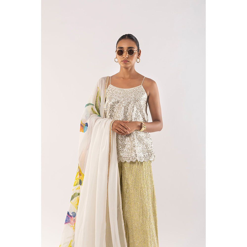 Kriti Bapna White Mirror Top with Palazzo and Dupatta (Set of 3)
