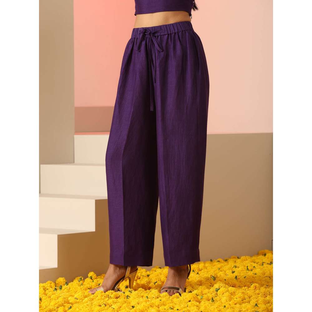 Description : A purple three piece set, embroidered in Resham, cut dana and tiny mirrors.