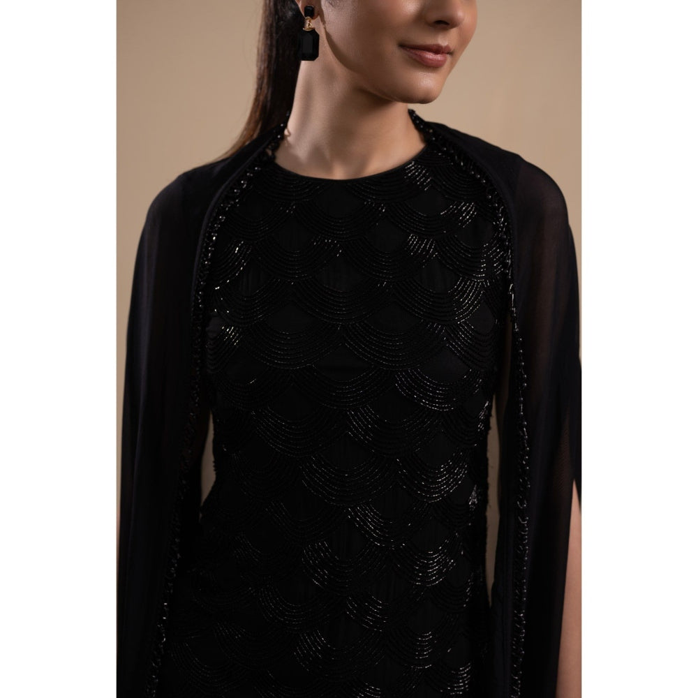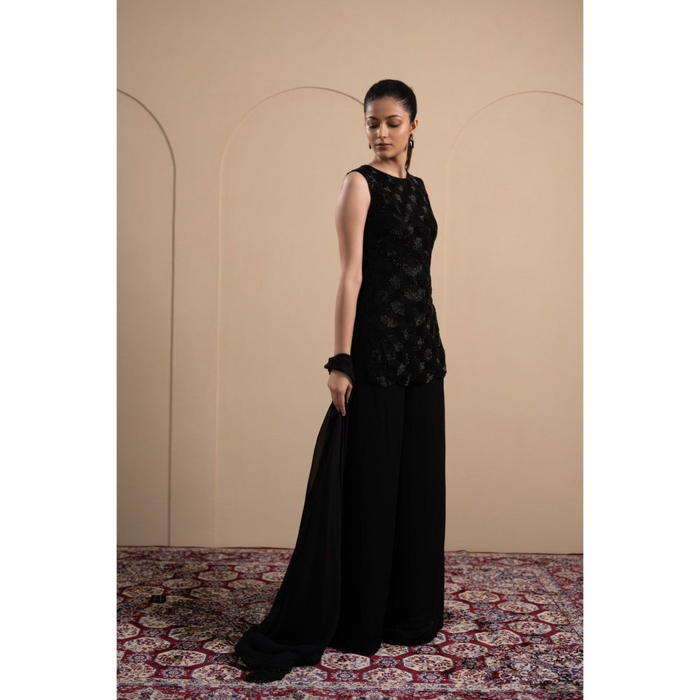 LABEL TANYA CHOPRA Black Kurta and Palazzos with Dupatta (Set of 3)
