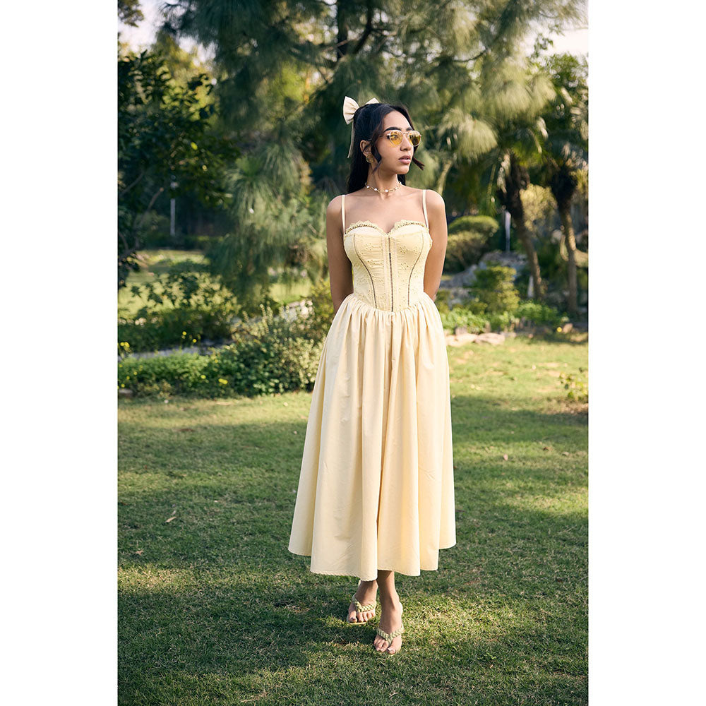 Yellow Edwina Butter Corset Midi Dress