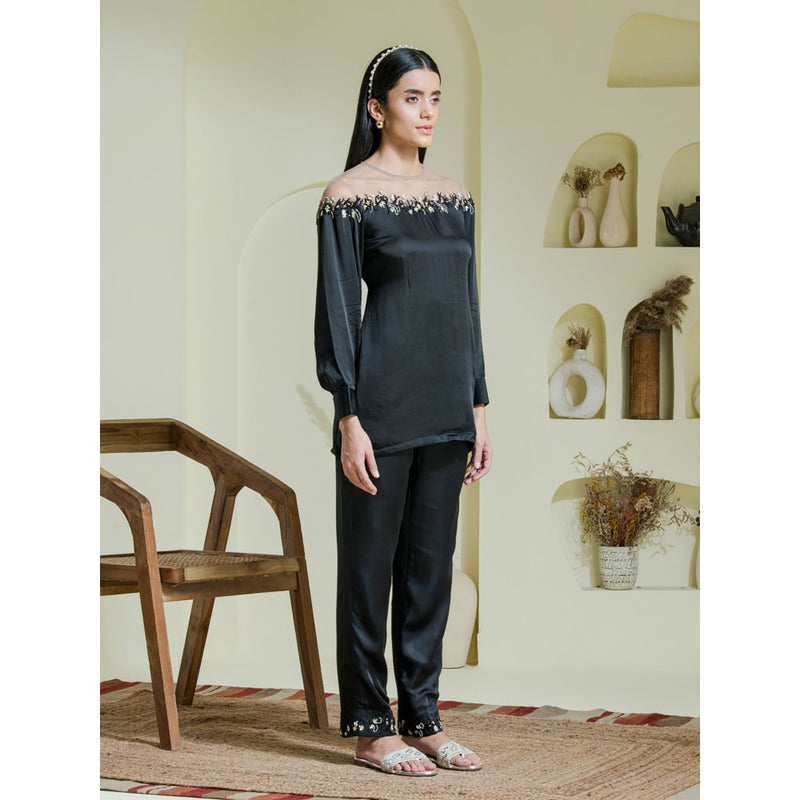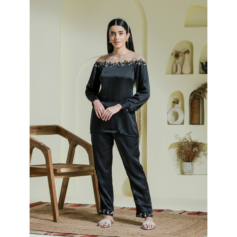 Description : Inject A Dash Of Glamour and Style At The Next Party with This Classy Co-Ord Set Hand Embroidered with Oh So Classy Floral Design On Neckline.