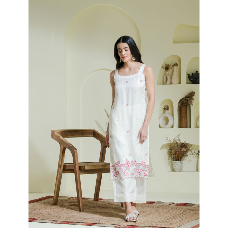 Maive White Pink Hand Embroidered Kurta Pant with Dupatta (Set of 3)