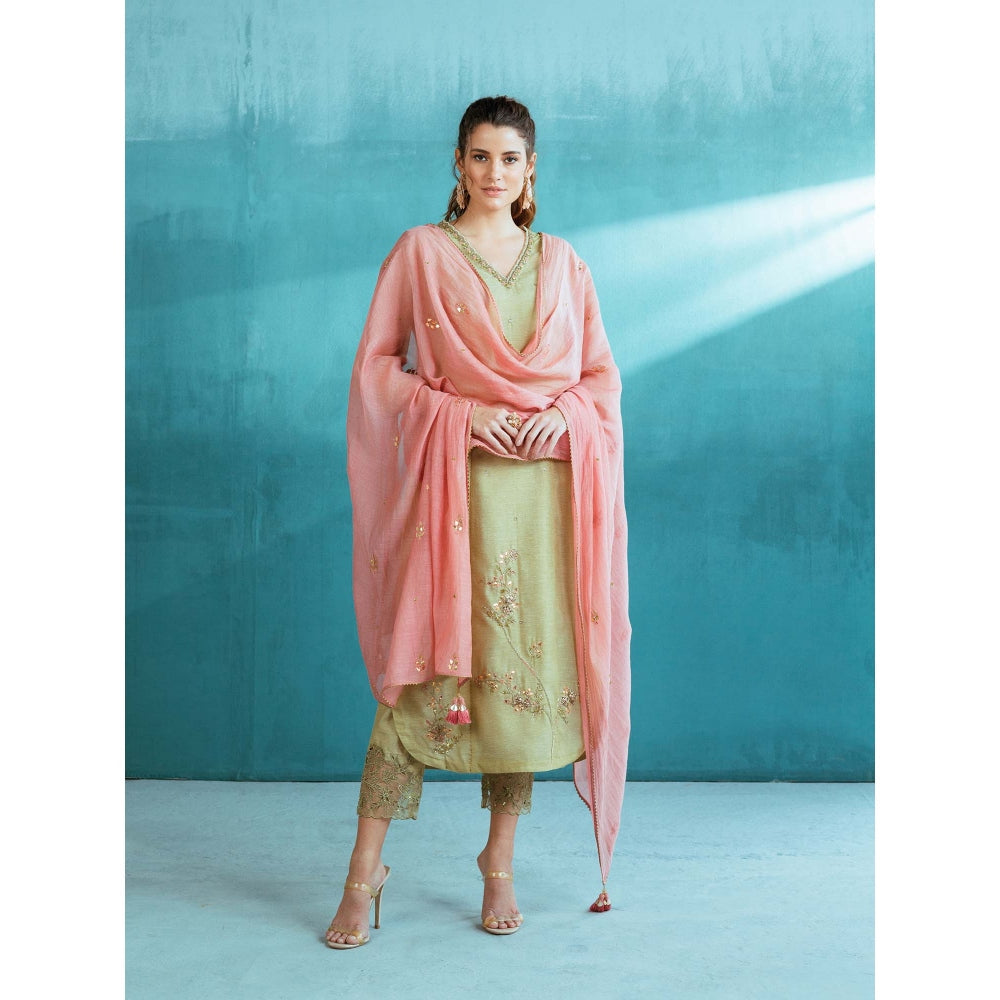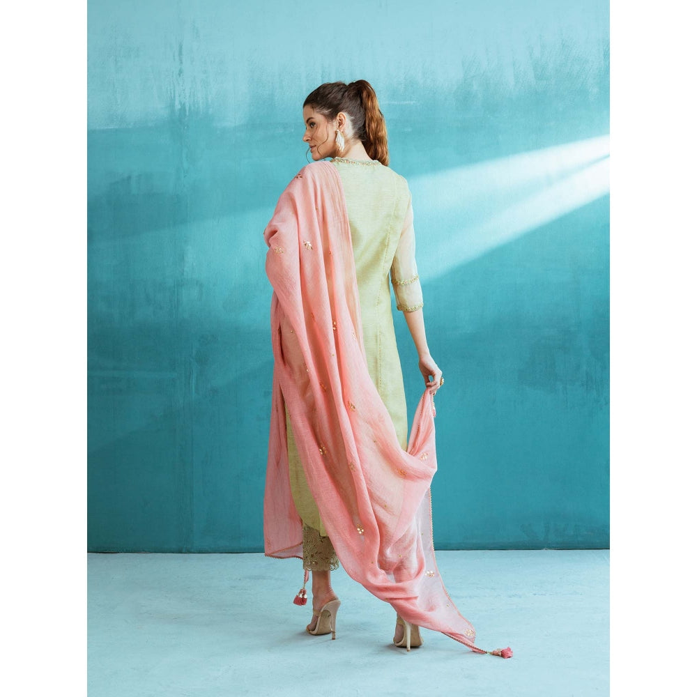 MANDIRA WIRK Pista Green Tissue Chanderi Kurta (Set of 4)