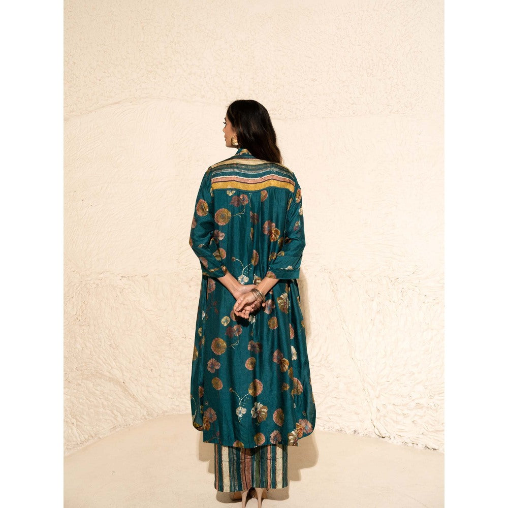 Green Floral Art Jacket with Top and Pant (Set of 3)