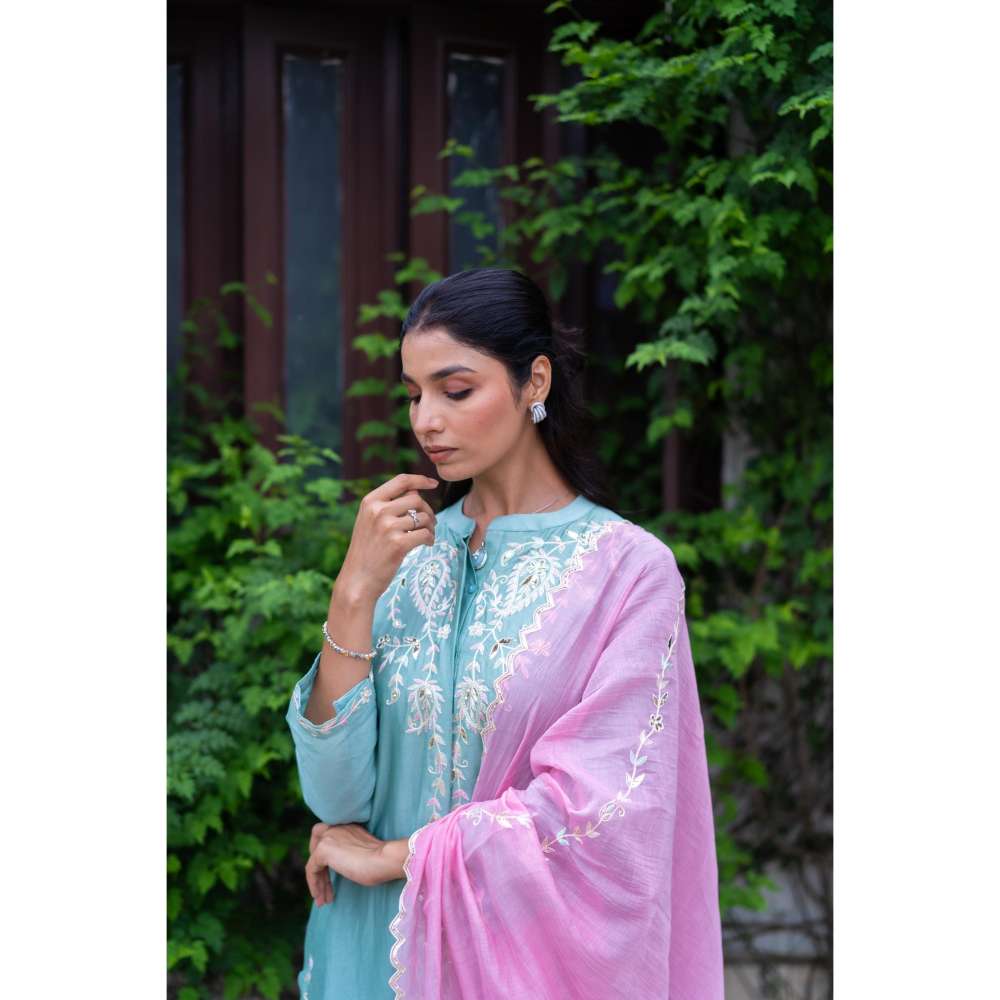MINSH Peony Blue Kurta With Pant And Dupatta (Set of 3)