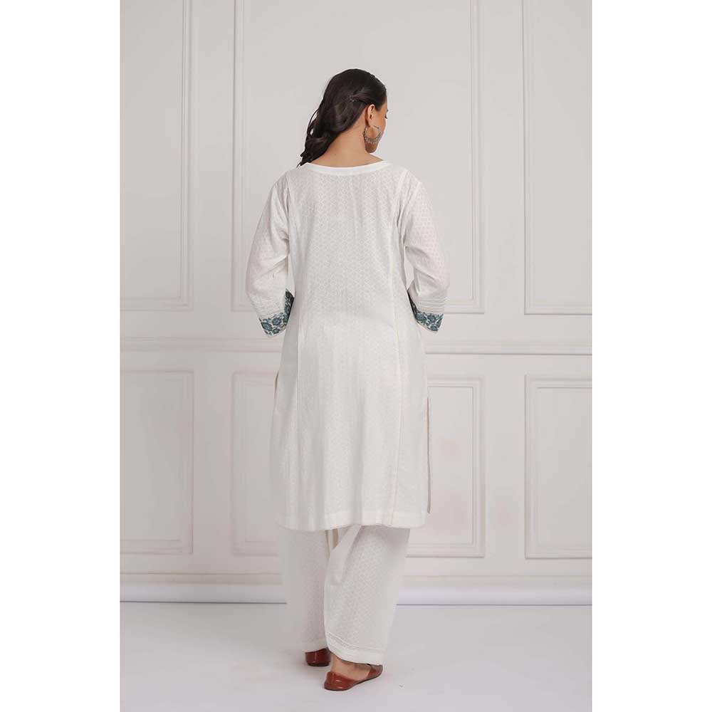 NEMAANI Off White Cotton Kurta with Salwar Pant (Set of 2)