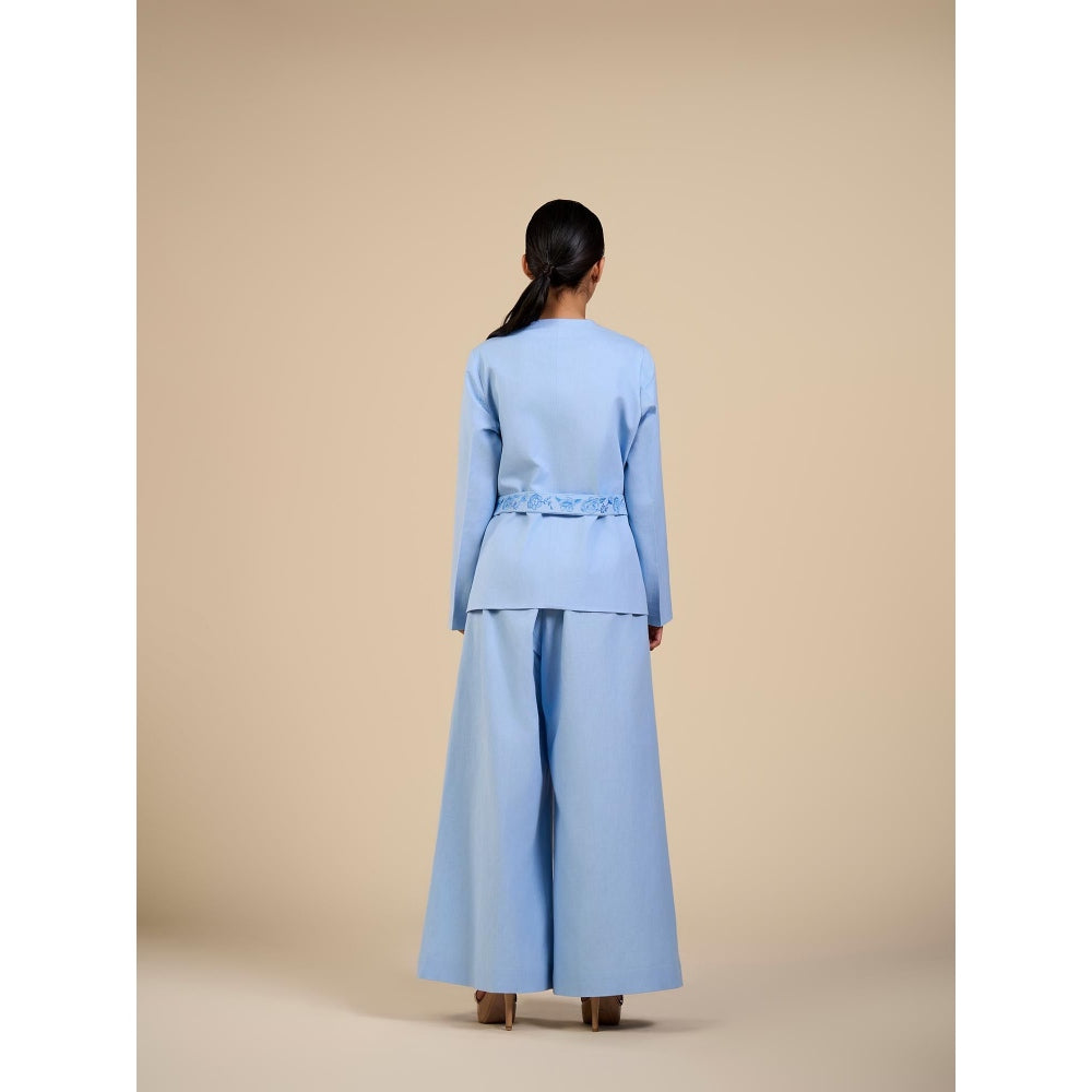 ORIGANI Blue Embroidered Rose Co-Ord (Set of 3)