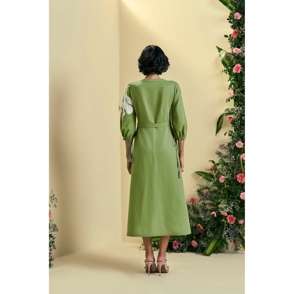 ORIGANI Green Iris Dress With Belt (Set of 2)