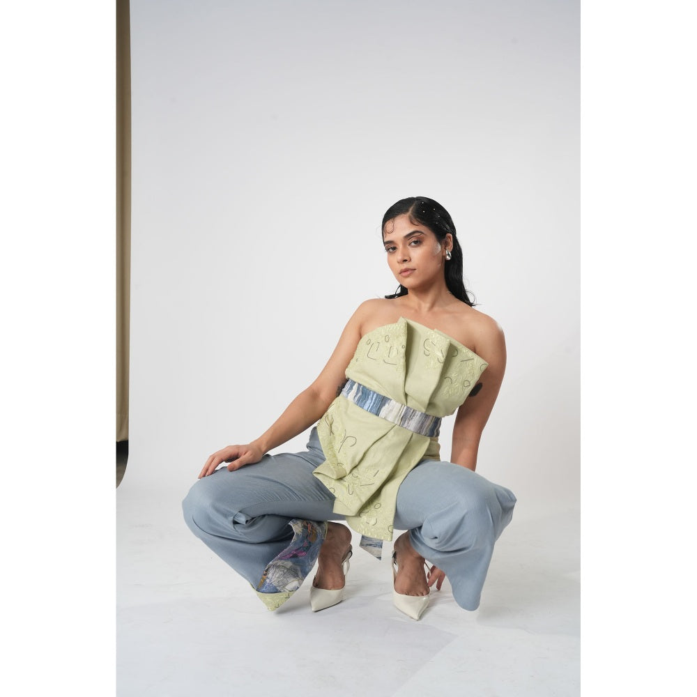 Green Vaanya Draped Warli Embroidery Top with Belt