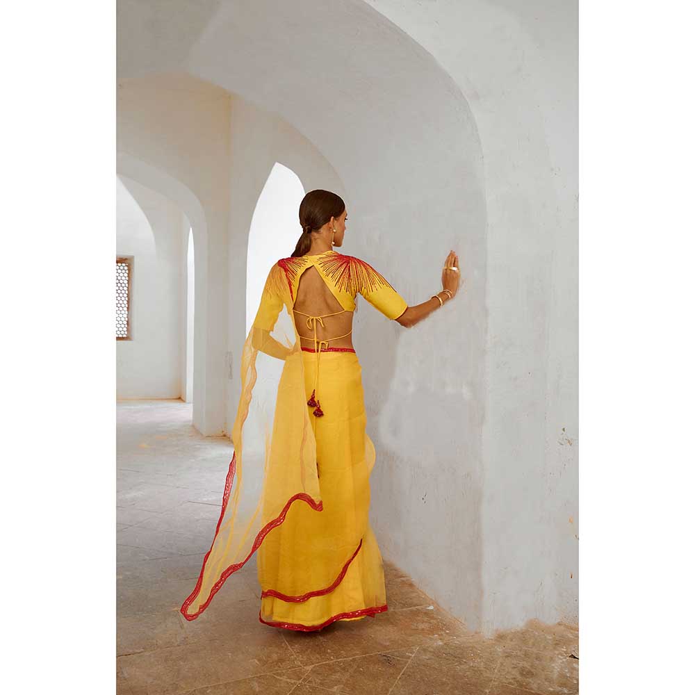 Gulbahar Daisy Yellow Mimosa Foregoes Saree With Stitched Blouse