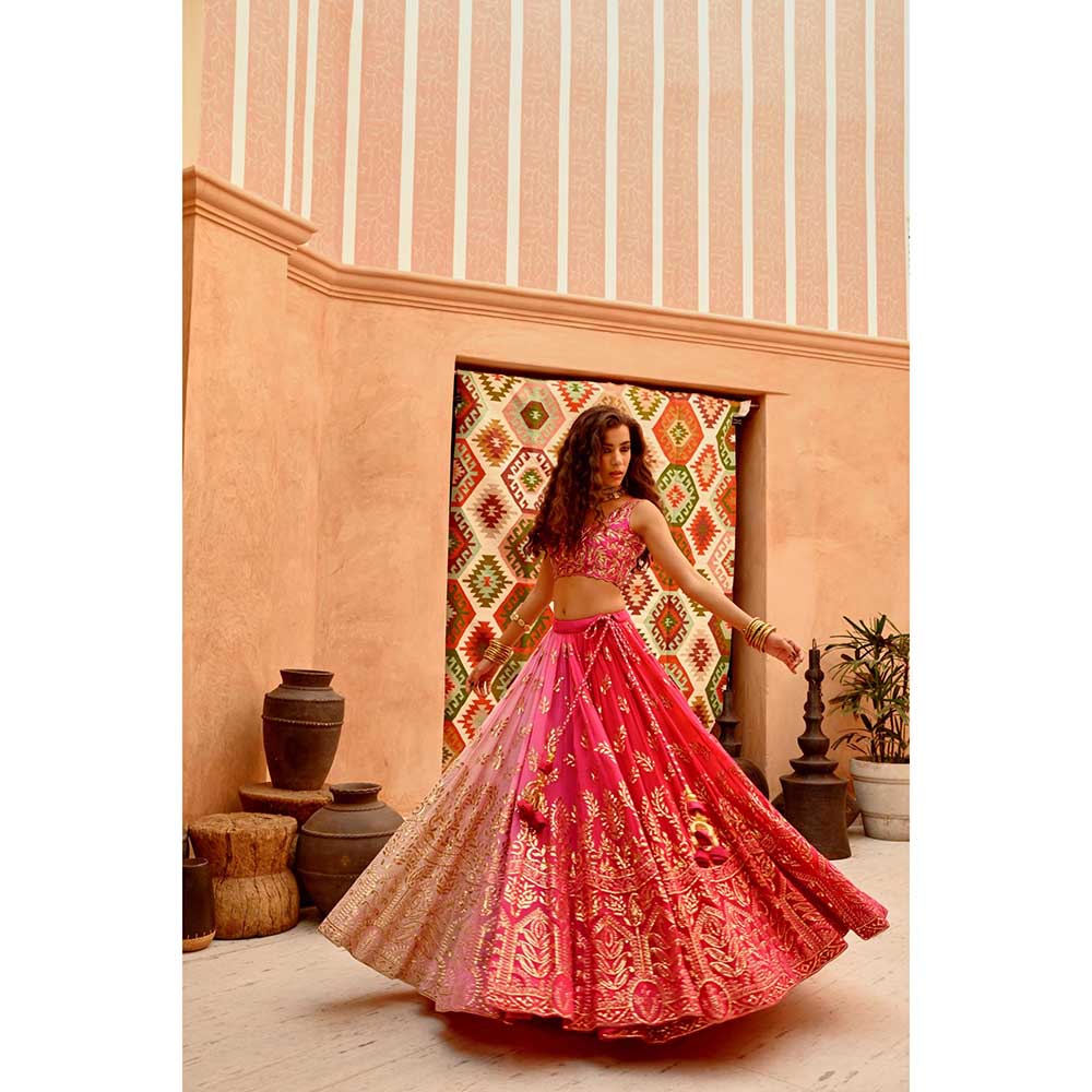 PALLAVI JAIPUR Hot Pink Ombre Queen Lehenga with Blouse and Cape (Set of 3)