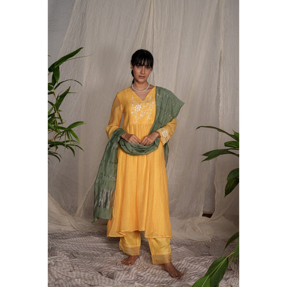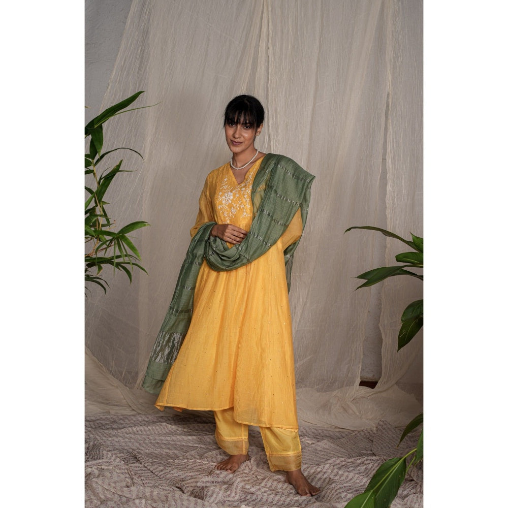 Yellow Chikan Embroidered Kurta (Set of 3)