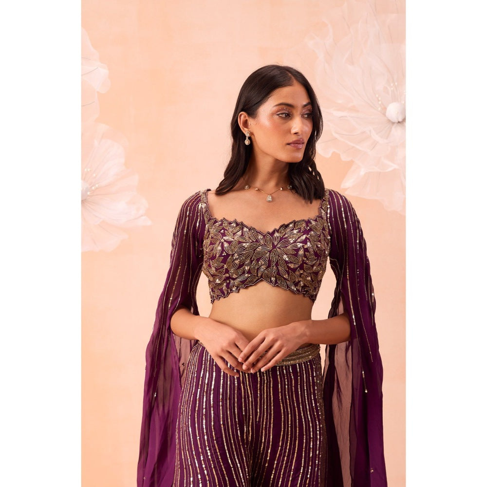 PARUL GANDHI Wine Blouse With Attached Cape And Sharara (Set of 2)