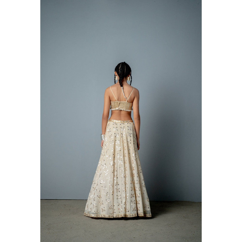 Description : \The Georgette Lehnga Is Made With Triangular Mesh Hand Block Print All Over.