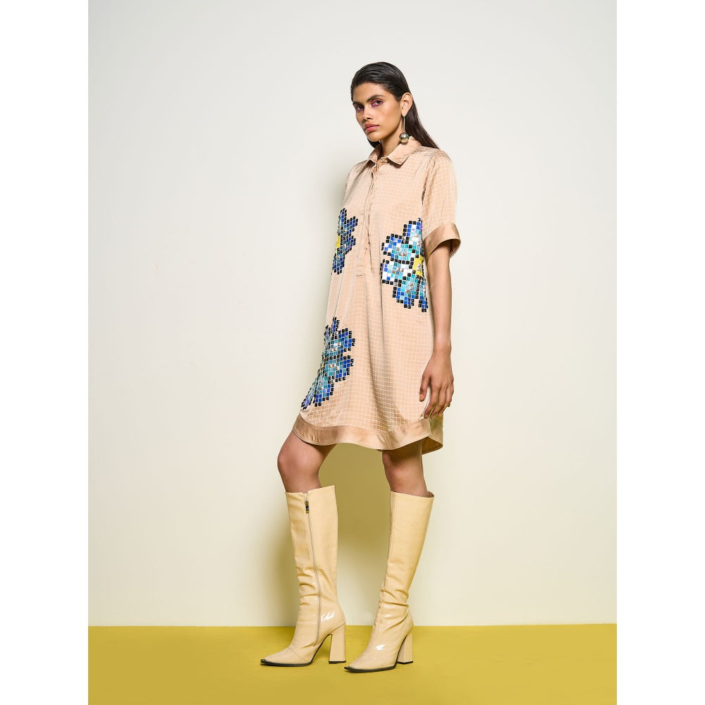 Description : Nude Dress Collared Shift Dress Withs Sequins Detailing