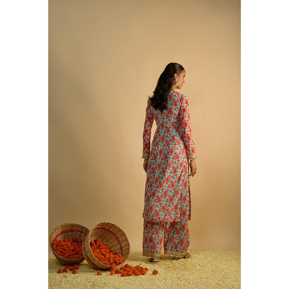 RAYASHA KHAN Blue Printed Long Kurta with Palazzo and Dupatta