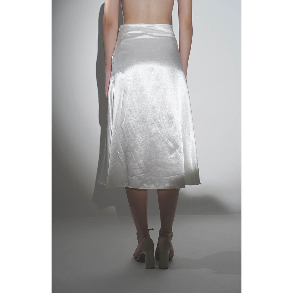 Description : This Cotton Satin Midi Skirt, with A Thigh-High Slit, Captures The Fluidity Of Water. Perfect For Adding A Touch Of Elegance and Charm To Your Wardrobe, It Moves Gracefully with Every Step.