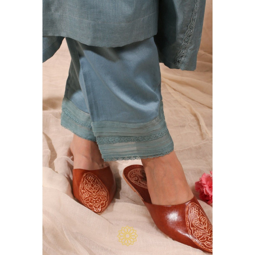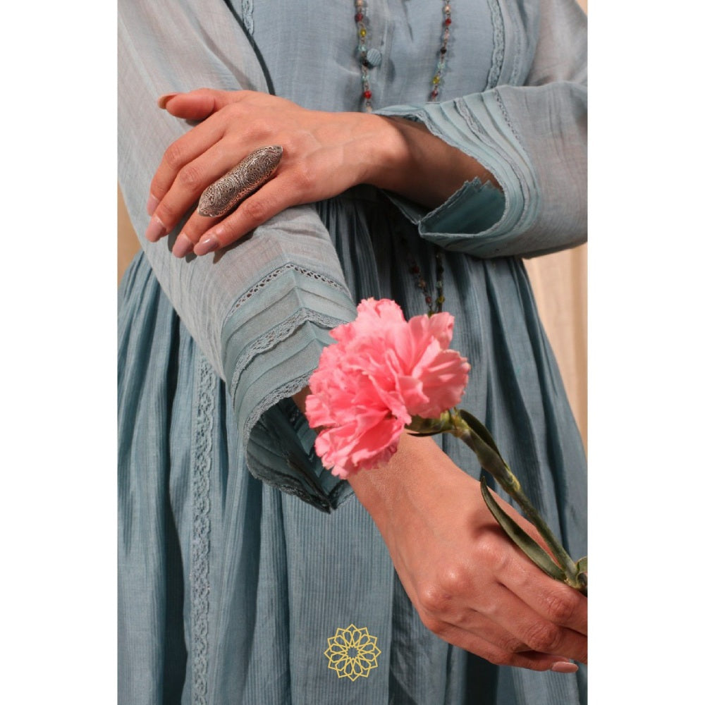 Rhua India Blue Gathered Kurta with Pant and Dupatta (Set of 3)