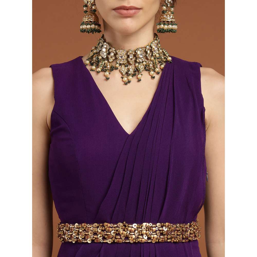 Description : Experience Opulence with Our Purple Draped Dress, Crafted From High-Quality Georgette Fabric. This Two-Piece Ensemble (Draped Dress and Belt) Features Detailed Hand-Embroidery and Luxurious Craftsmanship, Creating A Divine Elegance Perfect For Any Occasion. The Hand-Embroidered Belt Adds An Extra Touch, Making This Outfit A Must-Have For Your Wardrobe.