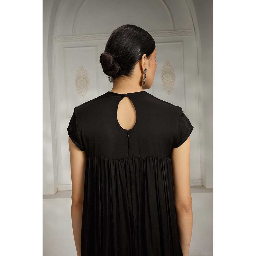 Description : Own your style with this black dress from Rivaar by Rocky Star. Made from high quality satin, it features hook and eye closure and solid pattern along with cap & round neck design. Pair it with heels and minimal jewellery to complete your ensemble.