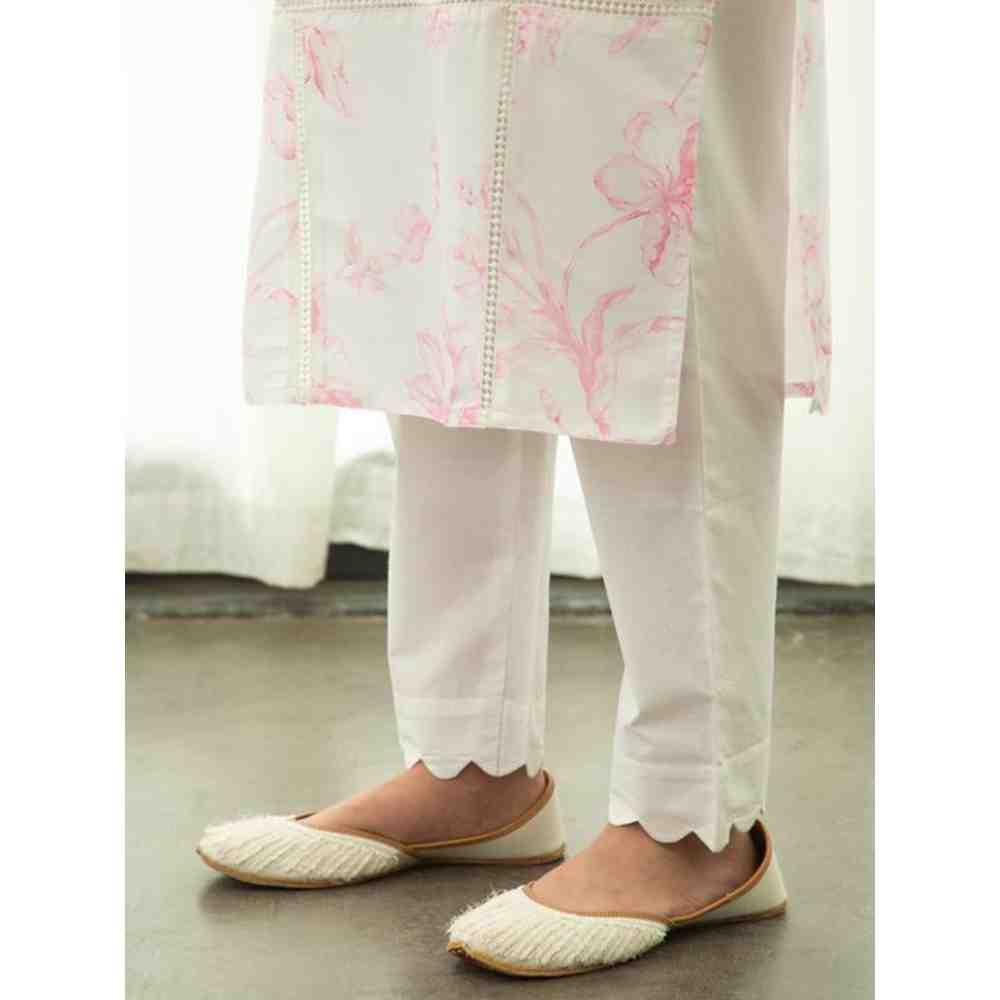 Description : Make a ravishing addition to your traditional lookbook with this lovely white straight kurta set from Roze. It is made with the finest quality cotton that is super lightweight, allows easy breathability, and has a highly comfortable texture. The set includes a kurta and straight-fit pants featuring a beautiful