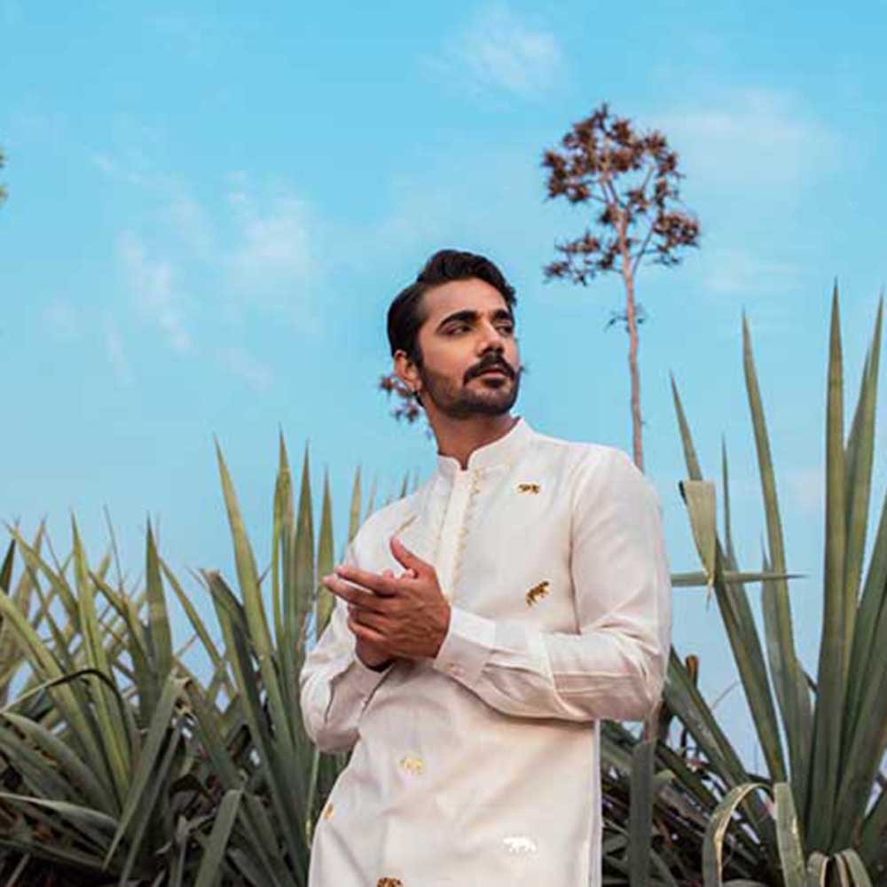 Description : Leave the crowd spellbound by stepping out in this captivating ivory tiger short kurta with pant from Runit Gupta. Made from high-quality chanderi, this piece features full sleeves and a mandarin neck. Style it with a watch and shoes to complete the ensemble.