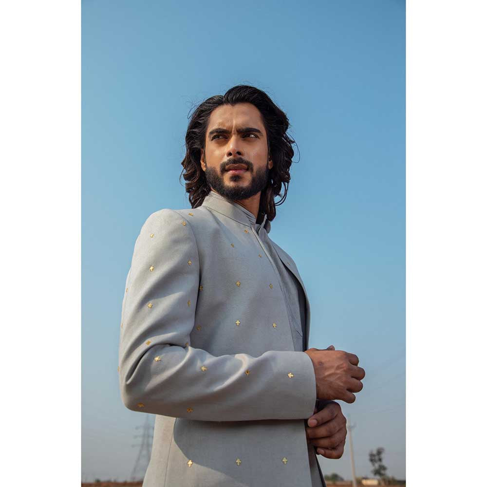 Smoke Grey Sherwani with Kurta and Pant (Set of 3)