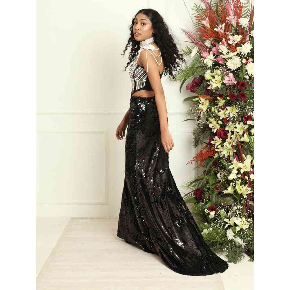 Saanjh by Lea Leila Black Hand Embroidered Corset Without Sleeves