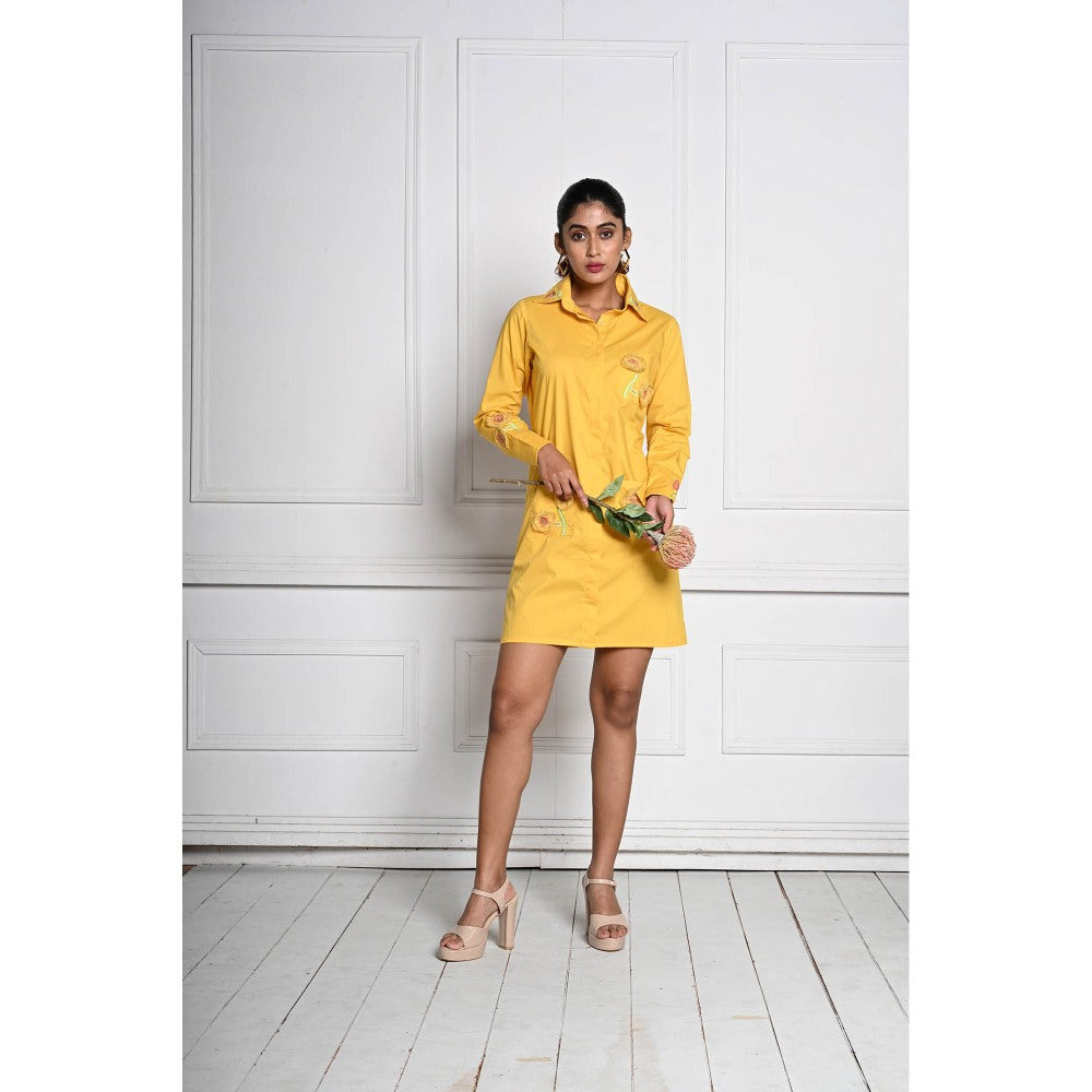 Yellow 3D Flower Shirt Style Dress