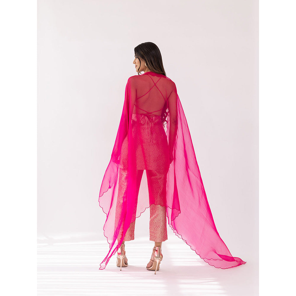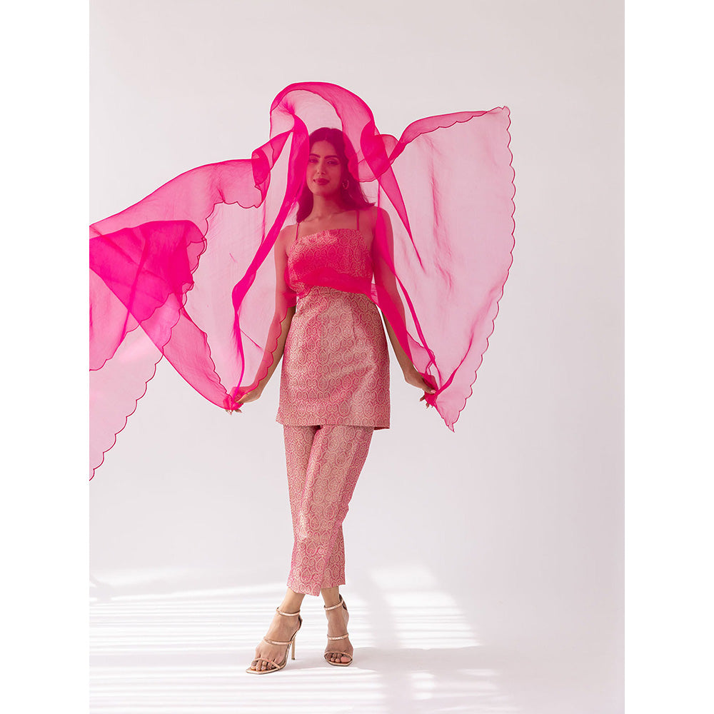 SHAAKHA Pink Printed Sleeveless Shoulder Strap Kurta With Pant & Dupatta (Set of 3)