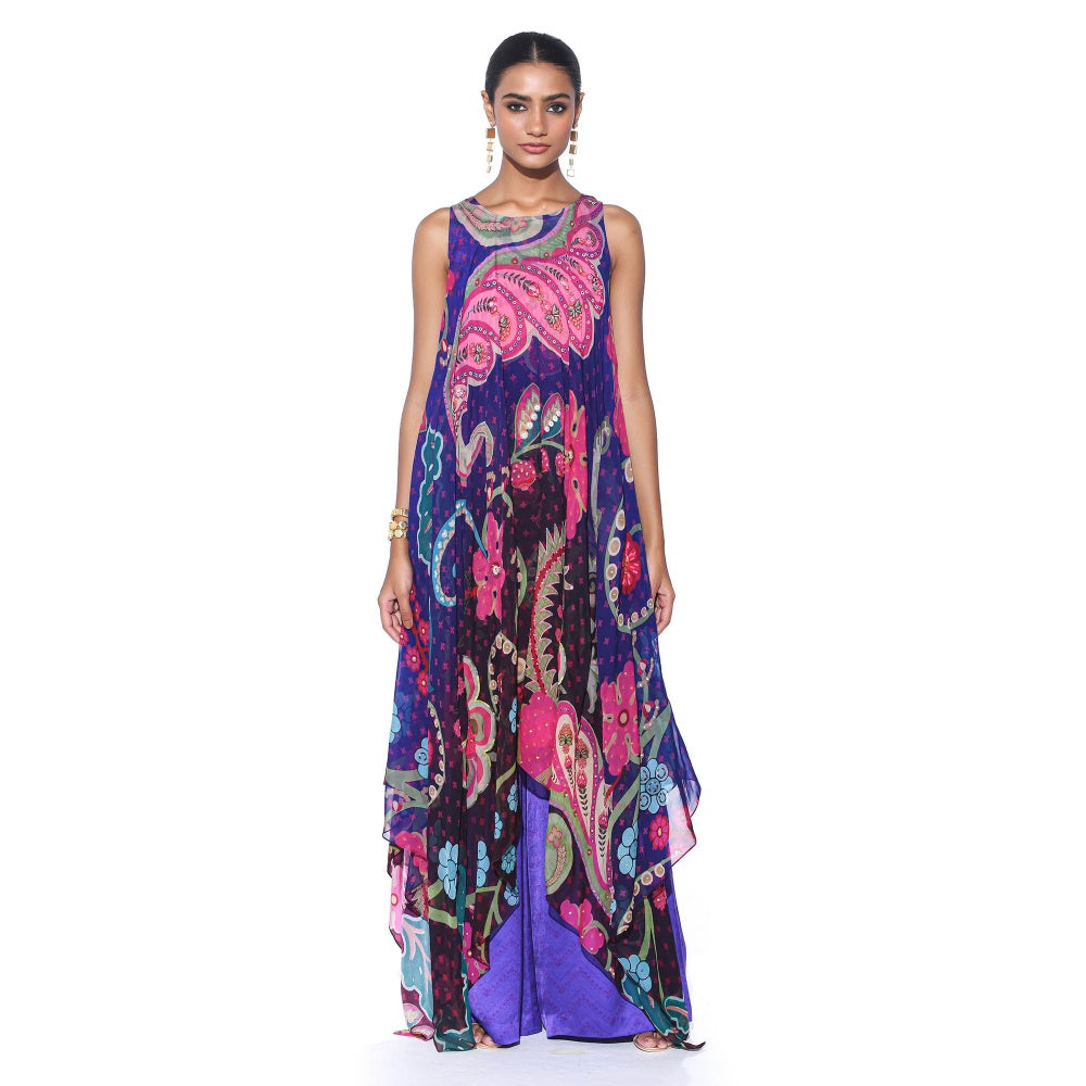 Description : Amp up your wedding wear wardrobe with Siddhartha Bansal collection. It is crafted from high-quality fabric. It features purple printed tunic, pant featuring sleeveless, round neck style with straight, mid waist rise style. Pair it with matching jewellery, heels and a big smile for the gorgeous look.
