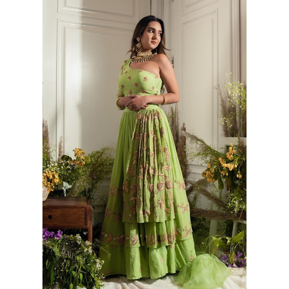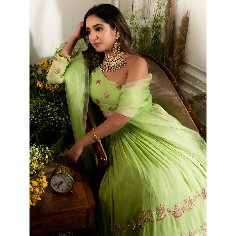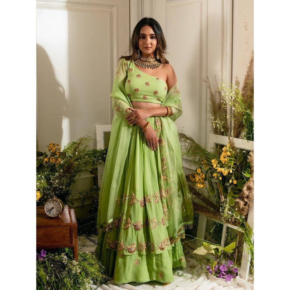 Simmi Guntaj Green Piranda Lehenga with Blouse and Dupatta (Set of 3)
