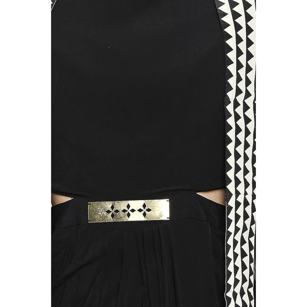 Description : Soup by Sougat Paul Black Drape Dress with Cape and Belt