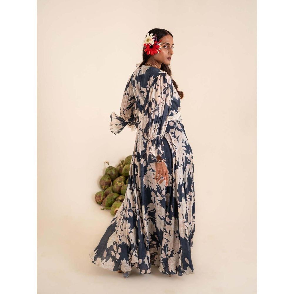 Sshilpa Samriya Indigo Blue Floral Print V-Neck Maxi Dress