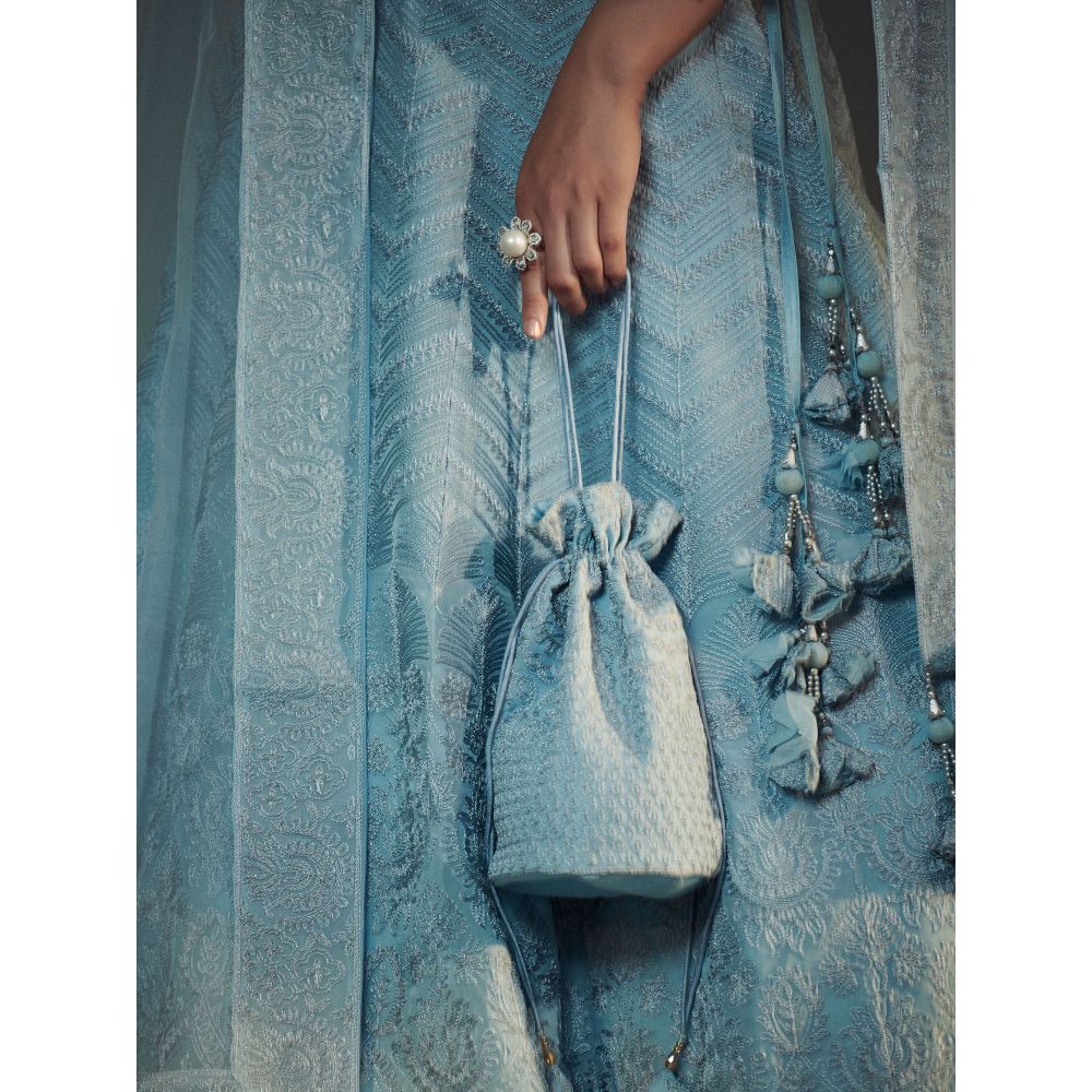 SUHINO Ice Blue Lehenga Blouse & Dupatta (Set of 3)