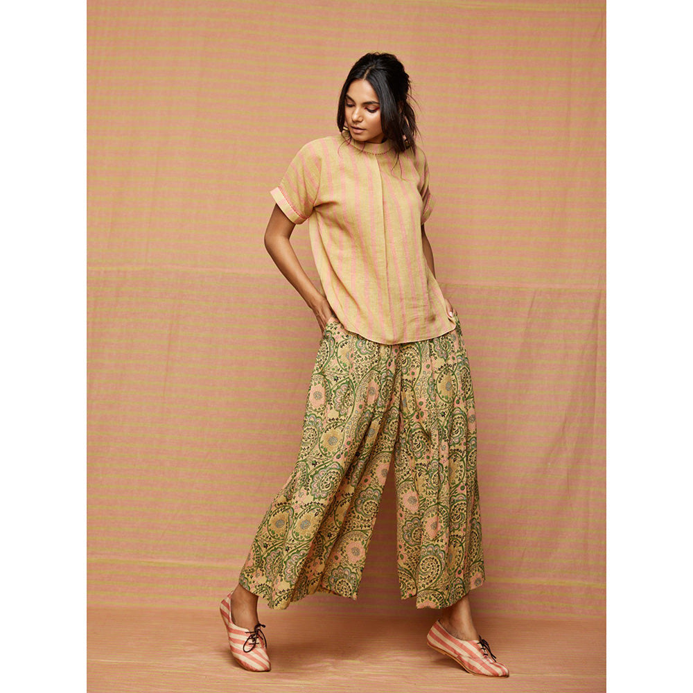 Description : Wrap yourself in elegance with this green palazzo by Swati Vijaivargie. Made from high quality linen, it features pull on closure and printed pattern along with & design. Pair it with trendy footwear and minimal jewellery to elevate your look.