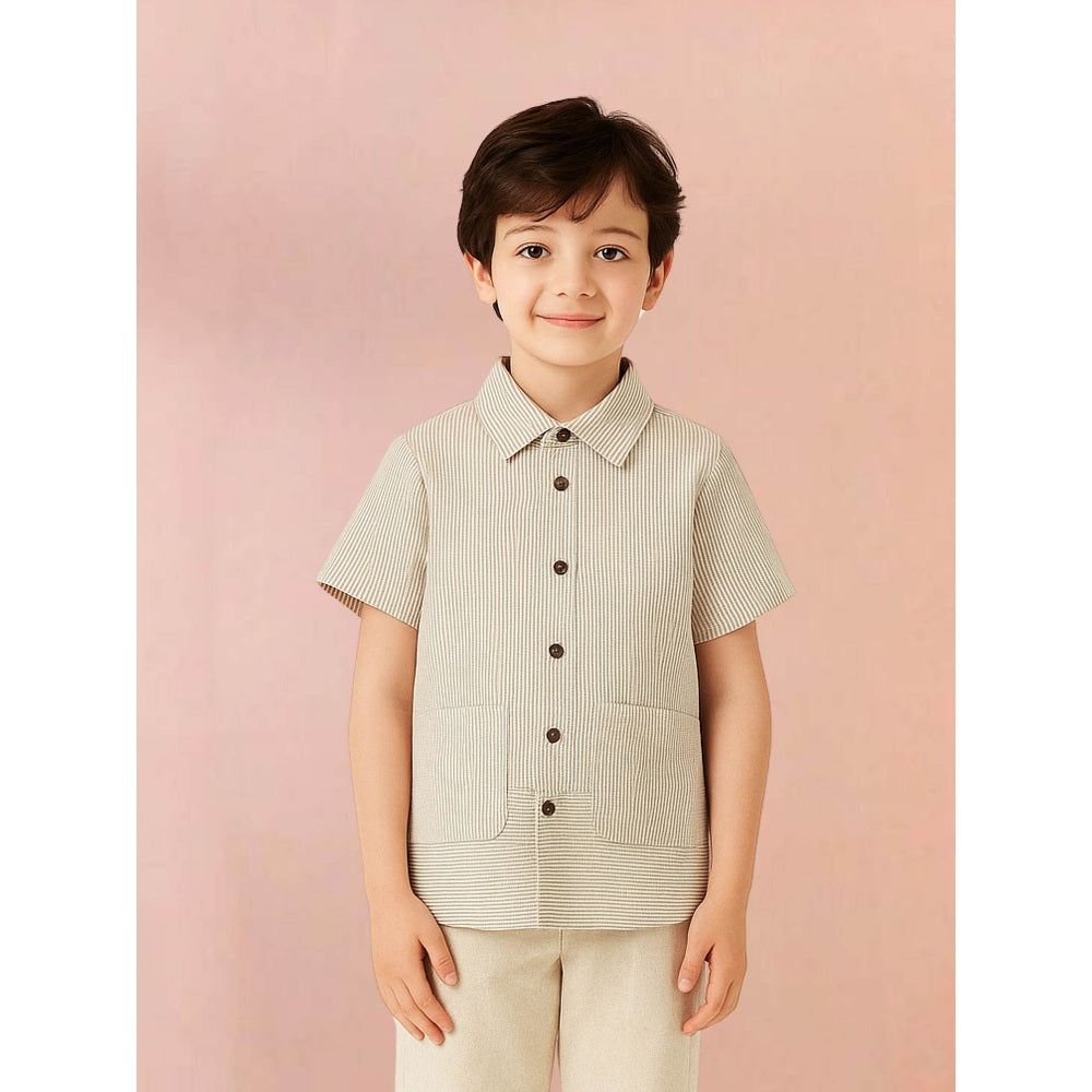 Tilsim by Sagarika Mehrotra Boy Beige Stripes Sync Co-Ord Set
