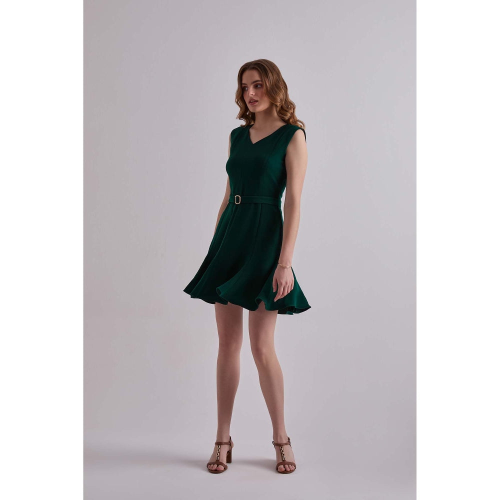 Torsha Green Polyester Emerald Daze Mini Dress with Belt for Women