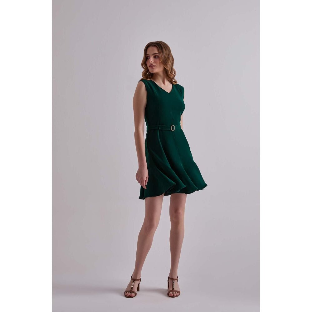 Green Polyester Emerald Daze Mini Dress with Belt for Women
