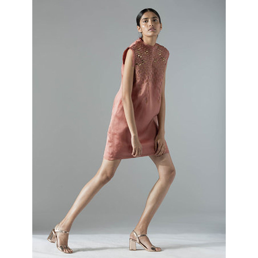 Description : This golden frong high-waisted sheath from A Humming Way is a total fashion investment! Its minimalistic and simple design makes it look rich and adds a sense of sophistication to your attire. Adorned with an embellished high-neck, this sheath gives a bold and charismatic look. Accessorize it with the right earrings and a strappy pair of heels for an alluring look.