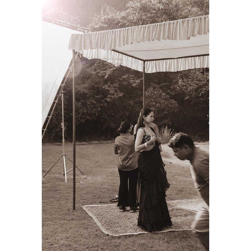 Description : Effortlessly stylish, this crystal jaal work heavy stitched blouse with pre drape saree from Ajiesh Oberoi blends classic charm with modern ease. It is crafted from high-quality fabric. It features sleeveless and square neck style. It's the epitome of understated elegance, perfect for festive, wedding, or special occasions.
