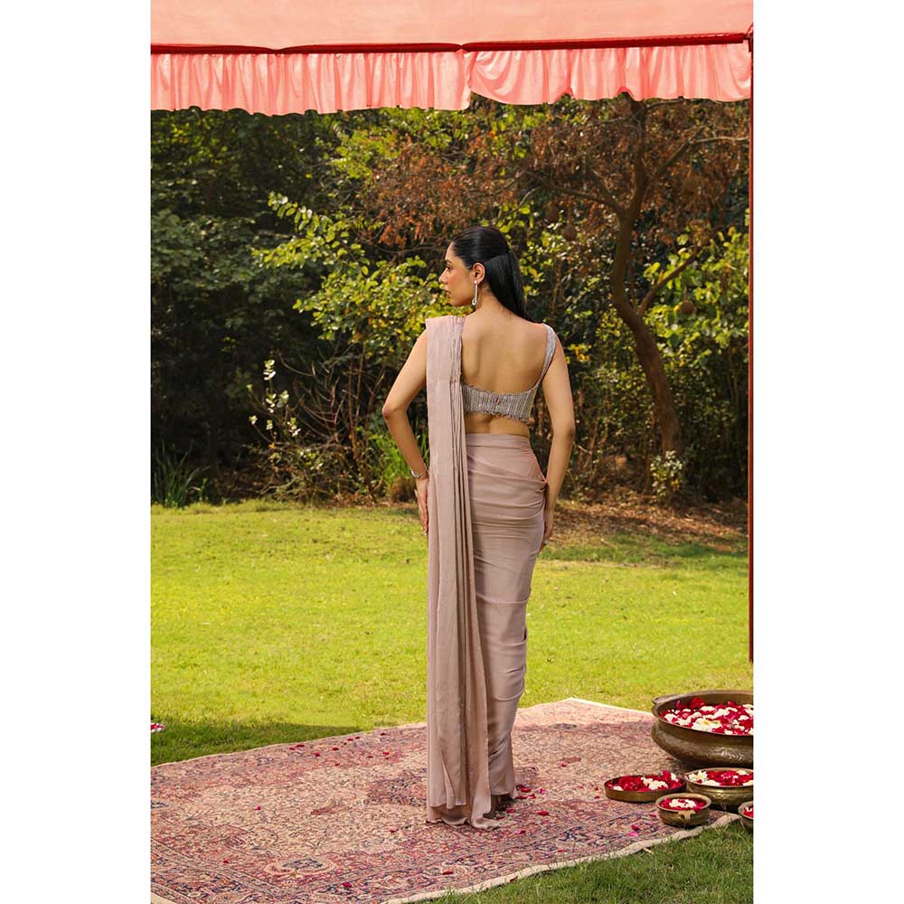 Description : Effortlessly stylish, this heavy dori and cut dana embellished stitched blouse with drape saree from Ajiesh Oberoi blends classic charm with modern ease. It is crafted from high-quality fabric. It features sleeveless and sweetheart style. It's the epitome of understated elegance, perfect for festive, wedding, or special occasions.