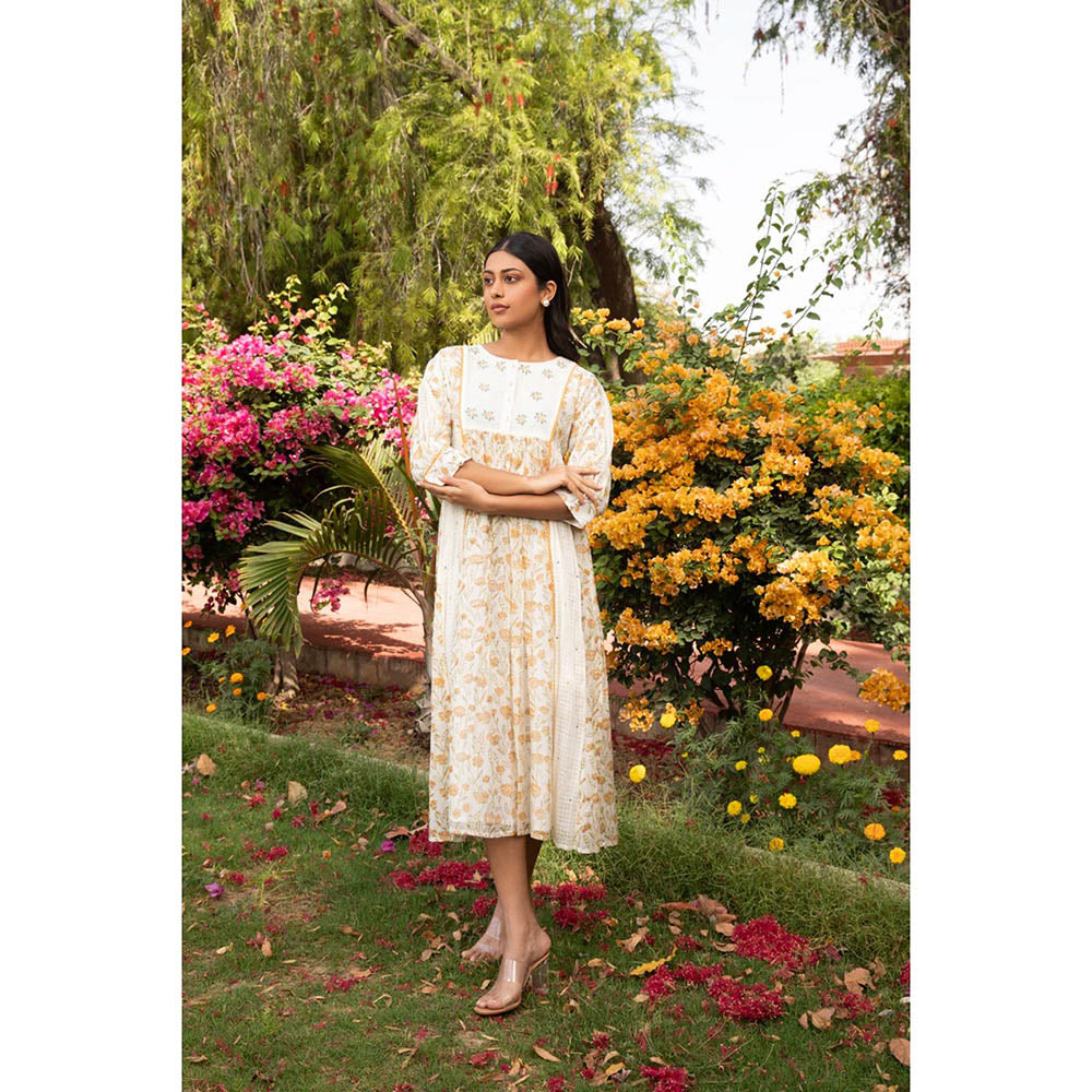 Amoree Off White Yoke Kali Dobby Thread Embroidery Dress
