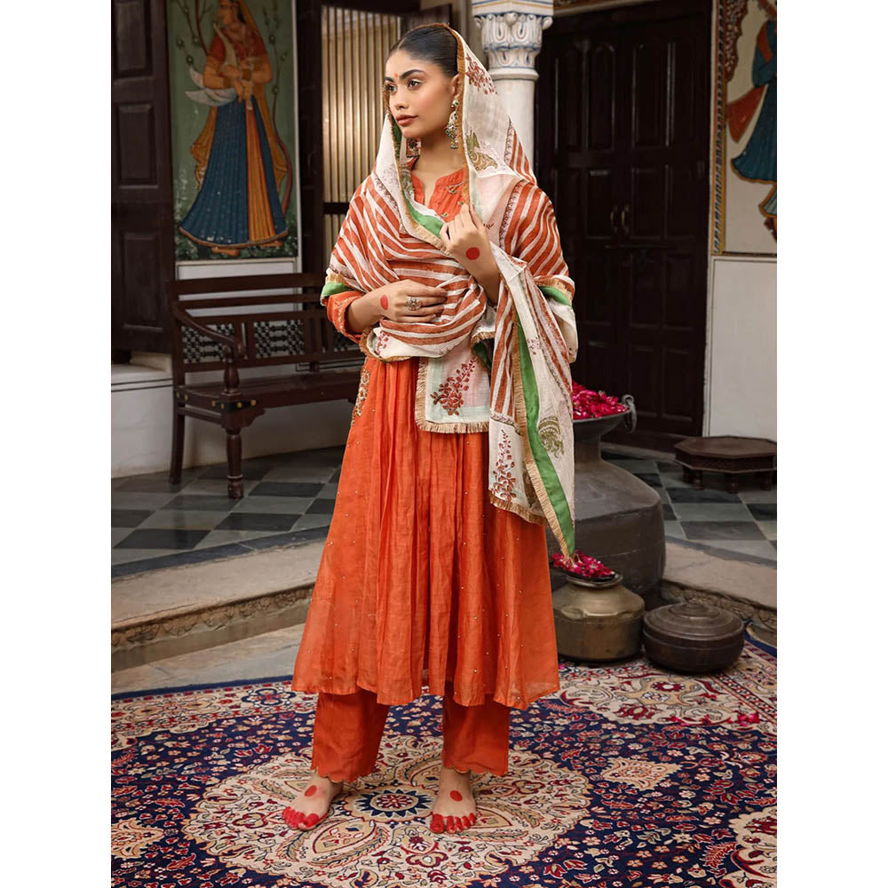 Amoree Rust Embroidered Kurta with Pant and Dupatta (Set of 3)