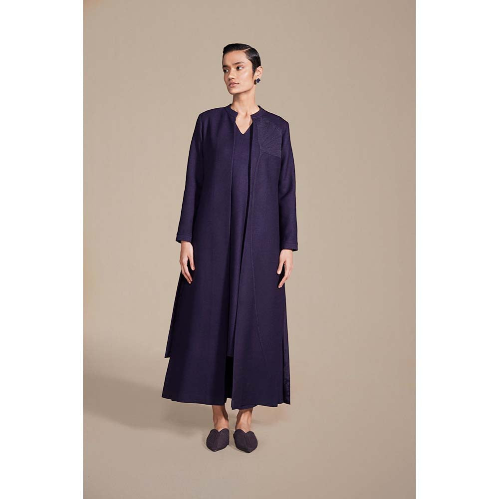 Description : Enhance your style with this purple embroidered co-ord set from AMPM. Made from high-quality wool, the jacket features full sleeves and a mandarin neck. It is paired with a mid-waisted palazzo and an inner. Style it with minimal jewellery and sandals to complete the ensemble.
